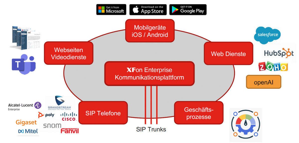 Optimieren Sie Ihre interne und externe Kommunikation und gestalten Sie Ihre Geschäftsprozesse smart und zielführend. Mit der Unified Communications Lösung von XFon vernetzen Sie Sprachtelefonie mit Instant Messaging und integrieren alle Arten von Endgeräten, vom Tischtelefon bis zu den Smartphones der Mitarbeiter. Sie binden Desktop-Arbeitsplätze und Home-Offices ein und nutzen eine benutzerfreundliche VoIP Telefonanlage. Egal wo, egal wie, egal mit wem, egal wann: Mit XFon nutzen Sie alle Dienste der Telefonie, und das überall.